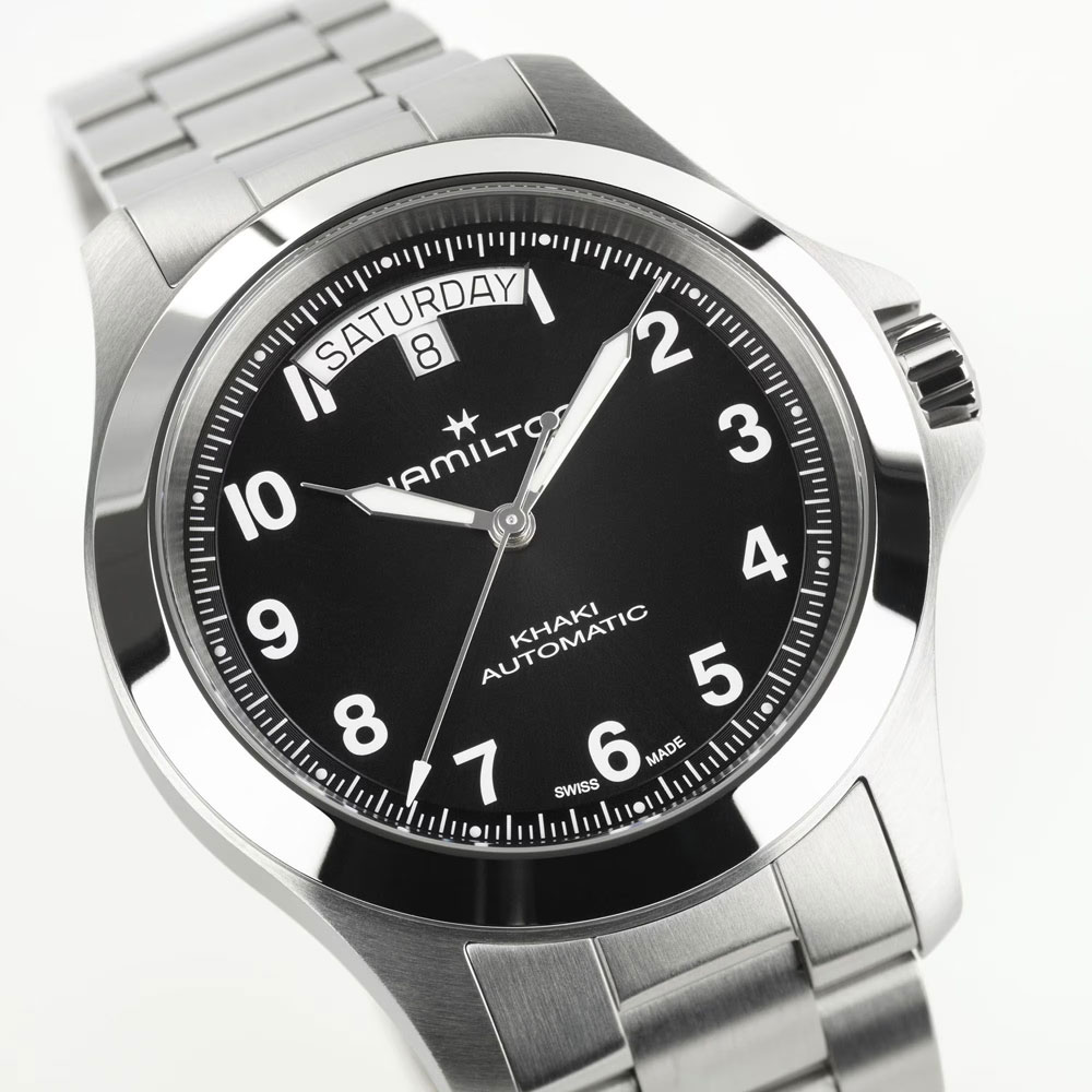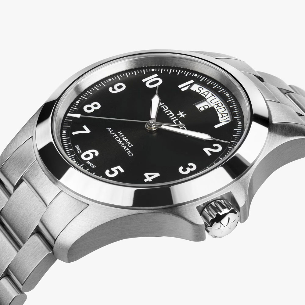 ラギッドでありながら洗練された「カーキ フィールド キング デイデイト オート 40mm」は、ミリタリーアイコンをオフタイムのために再解釈したモデルです。