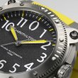 凸型のサファイアクリスタルが潜水中も安全性を確保。鮮やかなイエローラバーストラップや、サテン仕上げの46mmのチタン製ケースは、重厚なイエローの潜水艦を連想させます。